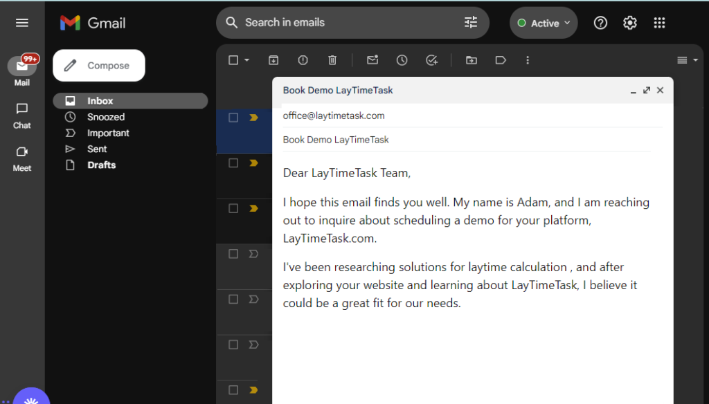 - Order a demo by contacting the sales department by sending an e-mail to: office@laytimetask.com